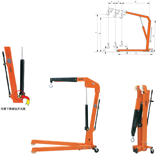 ● 根據需要,吊臂可三個工位調節。