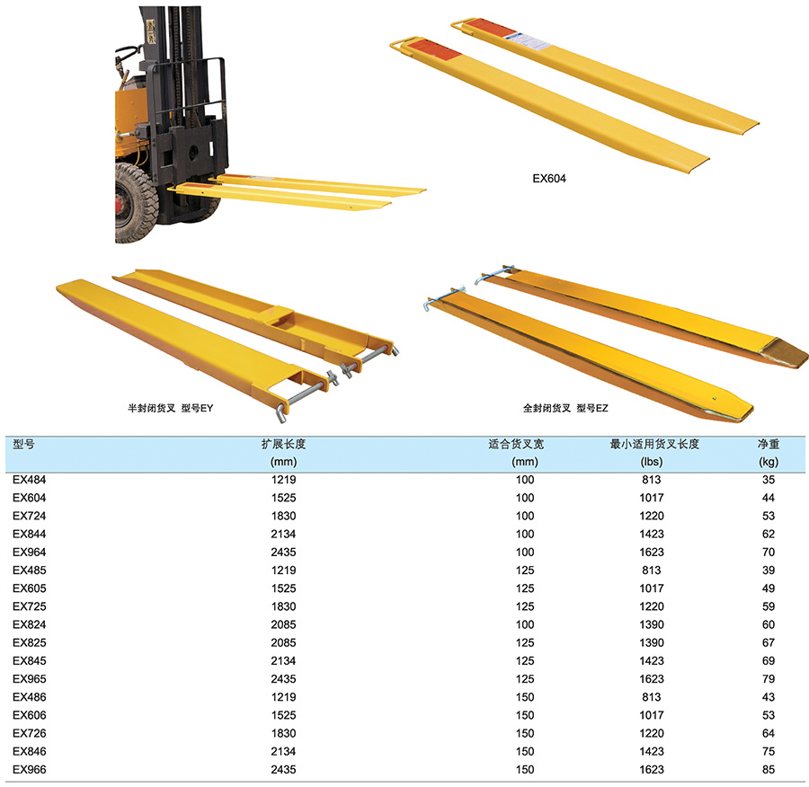 ※貨叉加長后的長度不得超出原貨叉長度的50%,即加長貨叉不得安裝于長度小于“適用貨叉長度”的原貨叉上。
