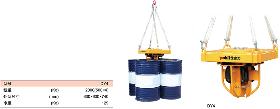 ● 一次性搬運四個油桶,僅用于有行車與有吊運設備的場。