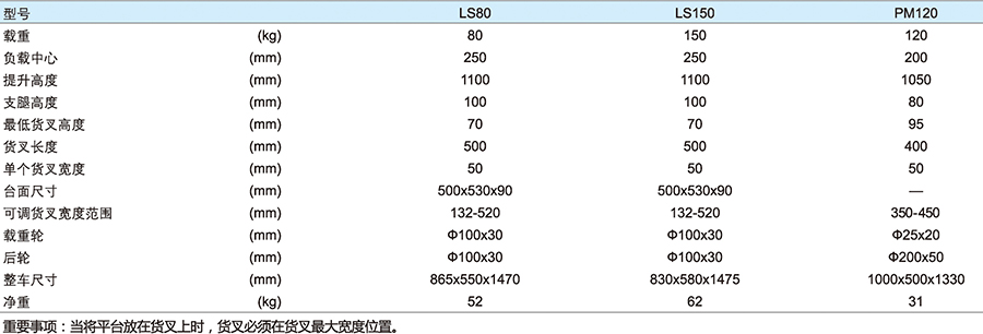 ● 可調貨叉。